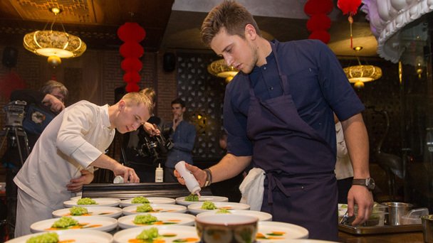 19日晚,中俄烹飪團隊在莫斯科陽光會館為“歡樂春節——中俄主廚之夜”獻上豐盛的中俄合璧大餐。