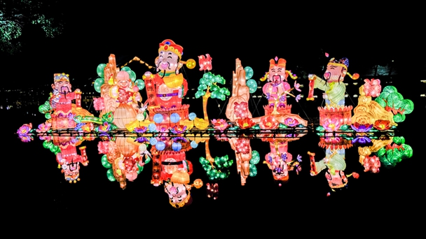 當日,浙江桐鄉烏鎮景區的特色“水燈會”正式亮燈,“富春山居”“福瑞喜廊”等9組大型水燈群亮相烏鎮西柵。