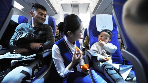 今年27歲的任煒是南方航空公司的一名“90后”乘務長。剛擁有1個月乘務長飛行經歷的她,參與了2018年的春運工作。