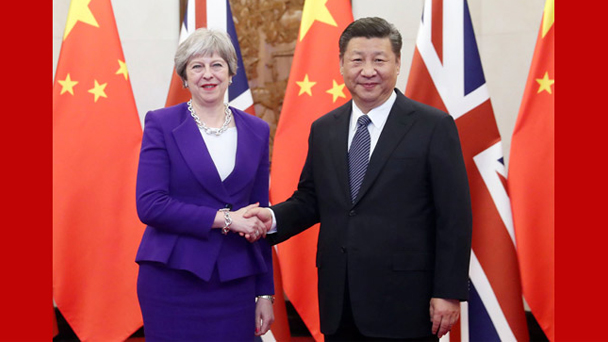 2月1日,國家主席習近平在北京釣魚臺國賓館會見來華進行正式訪問的英國首相特雷莎·梅。