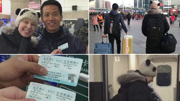 1月31日,來自美國的杰西卡和丈夫吳明杰在春運正式開始前,就早早地踏上了返鄉之路。