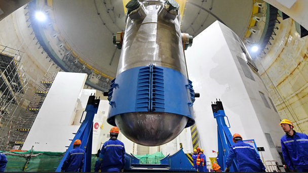 當日17時左右,“華龍一號”全球首堆、中核集團福清核電5號機組反應堆壓力容器順利吊裝入堆。當日17時左右,“華龍一號”全球首堆、中核集團福清核電5號機組反應堆壓力容器順利吊裝入堆。