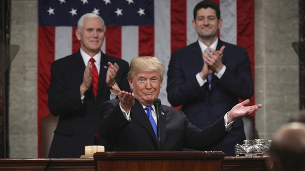 當地時間1月30日晚,美國總統特朗普發表上任以來的首次國情咨文。