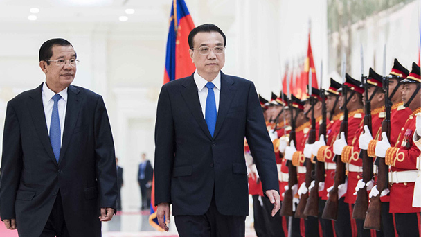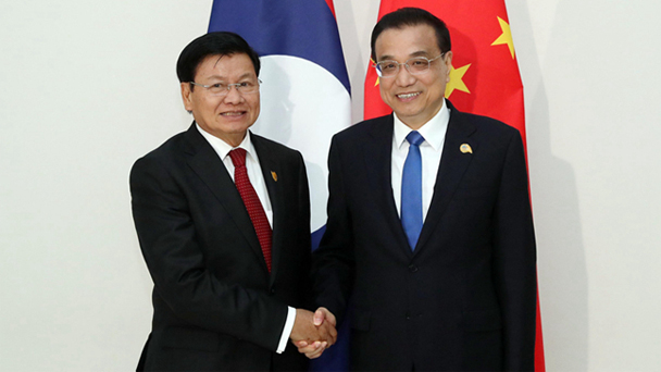 當地時間1月10日晚,國務院總理李克強在金邊會見老撾總理通倫。