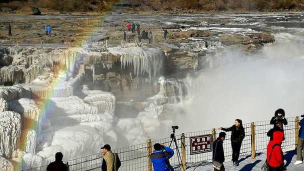 黃河壺口瀑布現“冰瀑玉壺”壯麗景觀