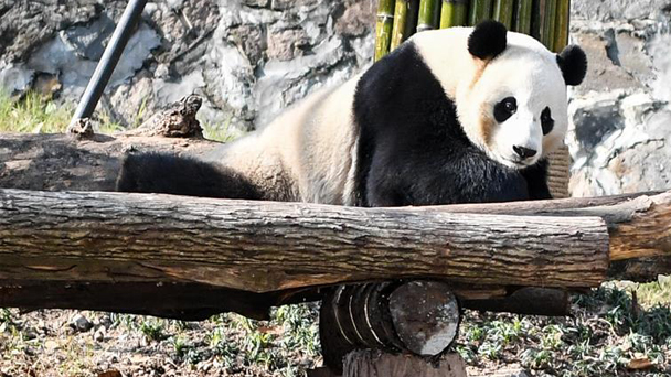 12月20日,26歲的大熊貓“英英”在中國大熊貓保護研究中心都江堰基地里一邊享受冬日暖陽一邊吃新鮮的竹子。連日來四川成都天氣晴好,中國大熊貓保護研究中心都江堰基地里的國寶大熊貓在工作人員的精心照顧下安逸的享受冬日暖陽。
