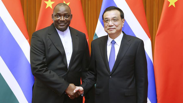 12月22日,國務院總理李克強在北京人民大會堂會見來華進行國事訪問的岡比亞總統巴羅。
