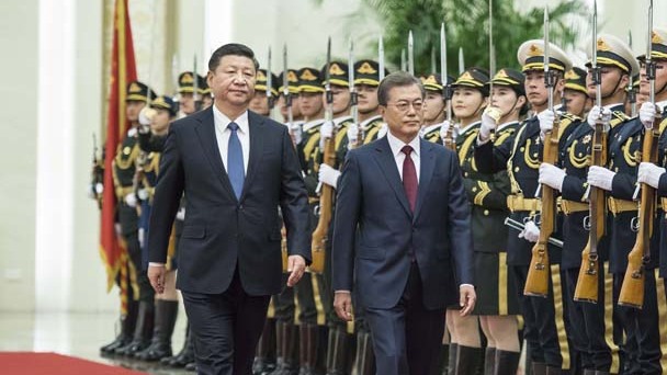 12月14日,國家主席習近平在北京人民大會堂同來華進行國事訪問的韓國總統文在寅舉行會談。