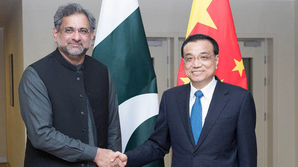 當地時間11月30日,國務院總理李克強在索契下榻飯店會見巴基斯坦總理阿巴西。