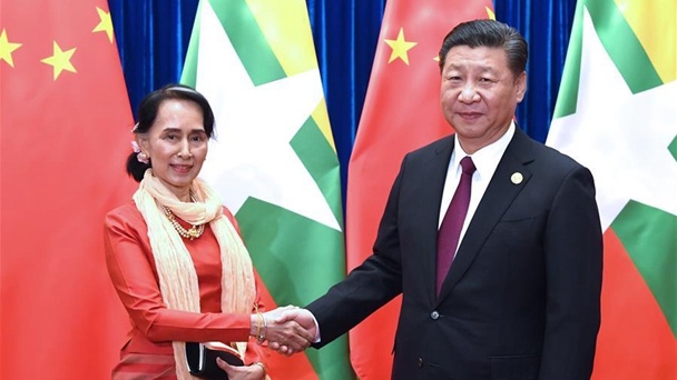 12月1日,中共中央總書記、國家主席習近平在北京人民大會堂會見前來出席中國共產黨與世界政黨高層對話會的緬甸國務資政昂山素季。