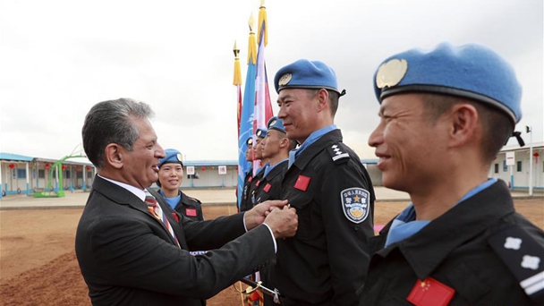聯合國駐利比里亞特派團(聯利團)11月30日代表聯合國向中國第五支駐利比里亞維和警察防暴隊全體140名隊員授予聯合國“和平勛章”,以表彰他們在維和行動中作出的突出貢獻。