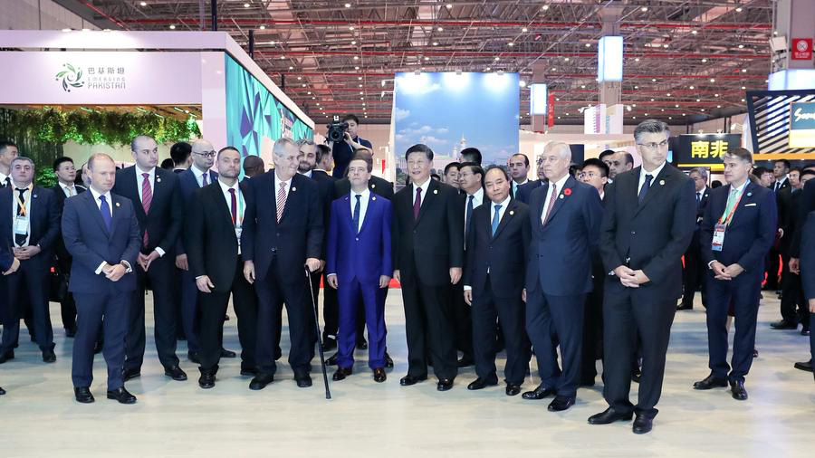 習(xí)近平同出席首屆中國國際進口博覽會的外國領(lǐng)導(dǎo)人共同巡館