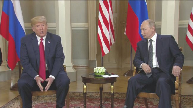 美國總統(tǒng)特朗普和俄羅斯總統(tǒng)普京于當(dāng)?shù)貢r(shí)間16日在芬蘭首都赫爾辛基舉行會(huì)晤。