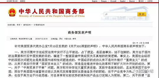 繼11日中午就美方公布2000億美元征稅清單發表談話之后,7月12日晚,商務部官網發表了一篇中美貿易戰以來的最長聲明。