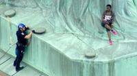反對特朗普移民政策 美國獨立日一女子爬上自由女神像基座抗議