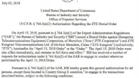 美國東部時間7月2日,美國商務(wù)部發(fā)布公告,暫時、部分解除對中興通訊公司的出口禁售令。