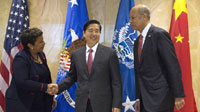 12月1日,中華人民共和國國務(wù)院國務(wù)委員、公安部部長郭聲琨在華盛頓與美國司法部部長林奇、美國國土安全部部長約翰遜共同主持了首次中美打擊網(wǎng)絡(luò)犯罪及相關(guān)事項(xiàng)高級別聯(lián)合對話。