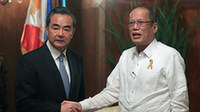 11月10日,外交部長王毅在馬尼拉總統(tǒng)府會見菲律賓總統(tǒng)阿基諾。王毅表示,中方愿通過對話協(xié)商,妥善處理所有影響雙邊關(guān)系的問題,包括海上問題。