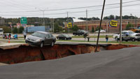 當地時間11月7日晚,默里迪恩市一家餐廳外停車場上出現了一個約183米長的巨型天坑,餐廳顧客目瞪口呆看著他們的汽車被天坑吞噬。
