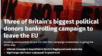 英國三大政治金主彼得·克魯達斯、約翰·米爾斯以及斯圖爾特·惠勒將聯合出資,發起英國脫離歐盟運動。三人凈財富超過10億英鎊,已累計為政界捐贈約300萬英鎊。