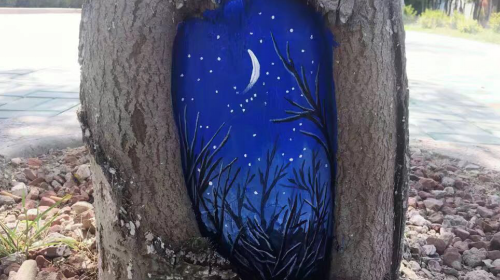 一顆小樹,一個樹洞,一個世界,90后小伙買東明樹洞作畫帶你走進美妙的童話世界。