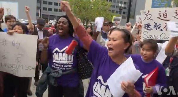 華盛頓唐人街華人集結(jié)抗議房屋拆遷