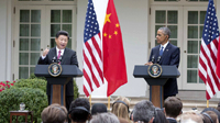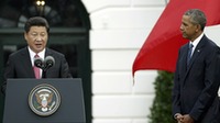當(dāng)?shù)貢r(shí)間9月25日,國(guó)家主席習(xí)近平在華盛頓同美國(guó)總統(tǒng)奧巴馬舉行會(huì)談。會(huì)談后,兩國(guó)元首共同會(huì)見(jiàn)記者。