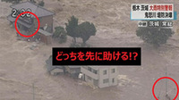 右下角有一個老大爺抱著電線桿,左上角還有人被困在房子的2樓。在這千鈞一發之際,日本自衛隊直升機到底會先救哪一個呢?