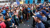 匈牙利警方9月1日封鎖了布達佩斯的一個主要火車站,以防非法移民前往歐盟其它國家,數百名難民在火車站外抗議。