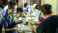 范女士與同伴找各種便利店買吃的,但基本上都不開門,要不就是被搶購一空,街頭有機(jī)構(gòu)發(fā)放免費(fèi)食物。