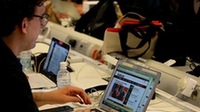 2018年6月12日,記者在新加坡的國際媒體中心觀看朝美領(lǐng)導(dǎo)人會晤的直播畫面。當(dāng)日,朝鮮最高領(lǐng)導(dǎo)人金正恩與美國總統(tǒng)特朗普在新加坡舉行會晤。