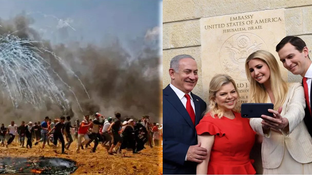 5月15日,美國駐以色列新使館開館的兩張照片刷屏媒體。
