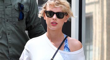 泰勒·斯威夫特運動裝現身 印花打底褲白T露香肩休閑有型