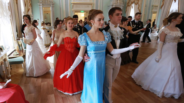 圣彼得堡年輕人舉辦復古舞會 重現19世紀經典場景