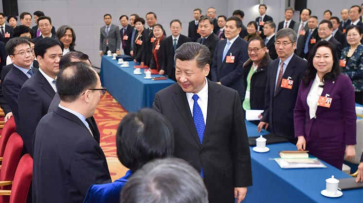 3月4日下午,中共中央總書記、國家主席、中央軍委主席習近平看望參加全國政協十三屆一次會議的民盟、致公黨、無黨派人士、僑聯界委員并參加聯組會,聽取意見和建議。
