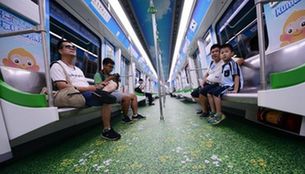 9月5日,人們乘坐東博會主題地鐵列車出行。三屆中國-東盟博覽會將于9月11-14日在廣西南寧舉行。新華社記者王全超攝  9月5日,人們乘坐東博會主題地鐵列車出行。新華社記者王全超攝  9月5日,一對父子在東博會主題地鐵列車上留影。