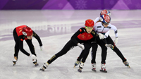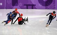 2018年2月17日,平昌冬奧男子短道速滑1000米四分之一決賽中,中國選手武大靖終點前與對手發(fā)生磕碰,最后被判罰犯規(guī),無緣晉級。