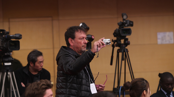十三屆全國人大一次會(huì)議新聞中心3月8日上午10時(shí)在梅地亞中心多功能廳舉行記者會(huì),邀請(qǐng)外交部部長(zhǎng)王毅就“中國外交政策和對(duì)外關(guān)系”回答中外記者提問。圖為記者在現(xiàn)場(chǎng)采訪。