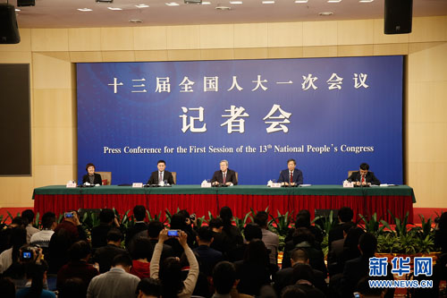 十三屆全國人大一次會議新聞中心3月9日在梅地亞中心多功能廳舉行記者會,邀請中國人民銀行行長周小川,副行長易綱,副行長、國家外匯管理局局長潘功勝就“金融改革與發展”相關問題回答中外記者提問。新華網/中國政府網 陳杰 攝