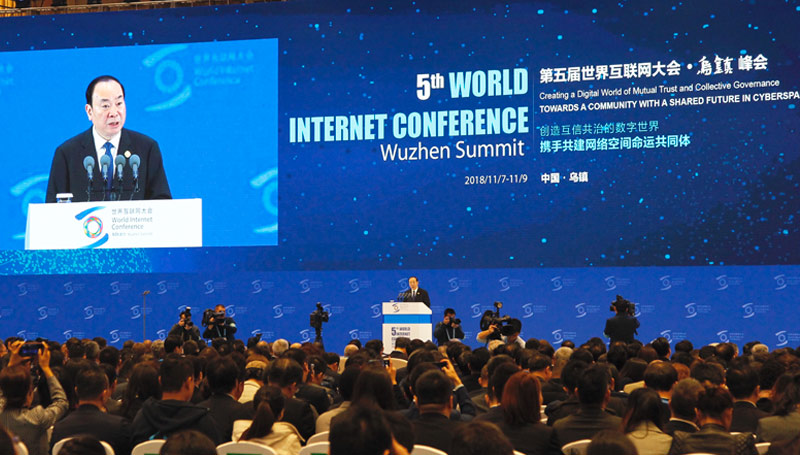 2018年11月8日上午,第五屆世界互聯網大會“預見互聯網未來——世界互聯網領先科技成果發布活動專家與企業家論壇”在浙江烏鎮召開。中央宣傳部副部長、中央網絡安全和信息化委員會辦公室主任、國家互聯網信息辦公室主任莊榮文,浙江省政協副主席周國輝,中國電子科技集團有限公司董事長熊群力出席論壇并致辭。