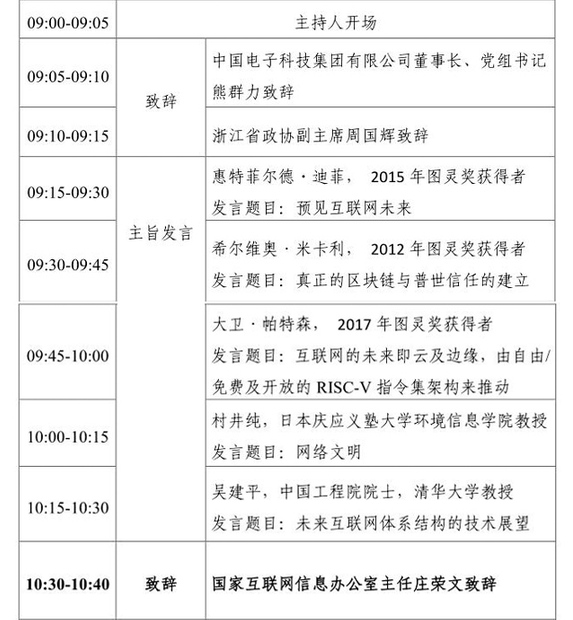 “預見互聯網未來-世界互聯網領先科技成果發布活動專家與企業家論壇”日程安排