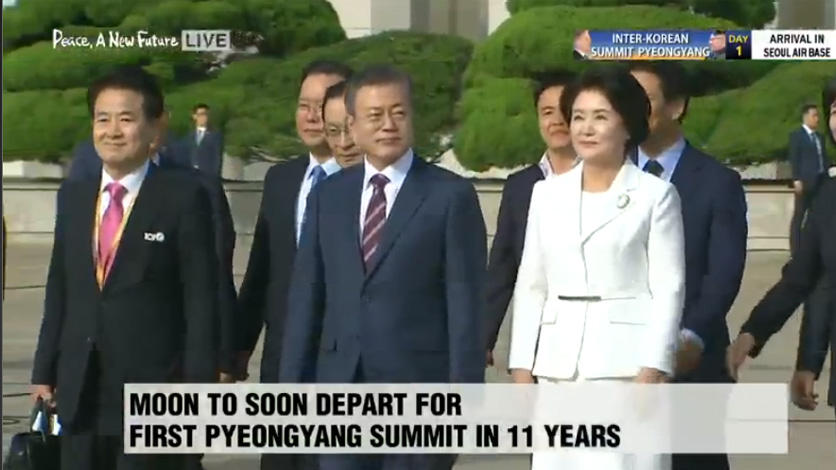 韓國(guó)總統(tǒng)文在寅乘專機(jī)前往平壤與朝鮮最高領(lǐng)導(dǎo)人金正恩會(huì)晤。